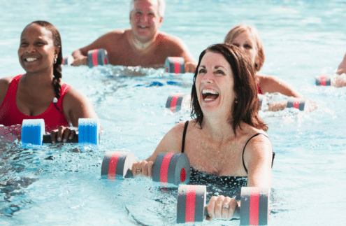 Es una forma de ejercicio físico dentro del agua y que generalmente está compuesto por diferentes movimientos sostenidos que estimulan grandes grupos musculares.